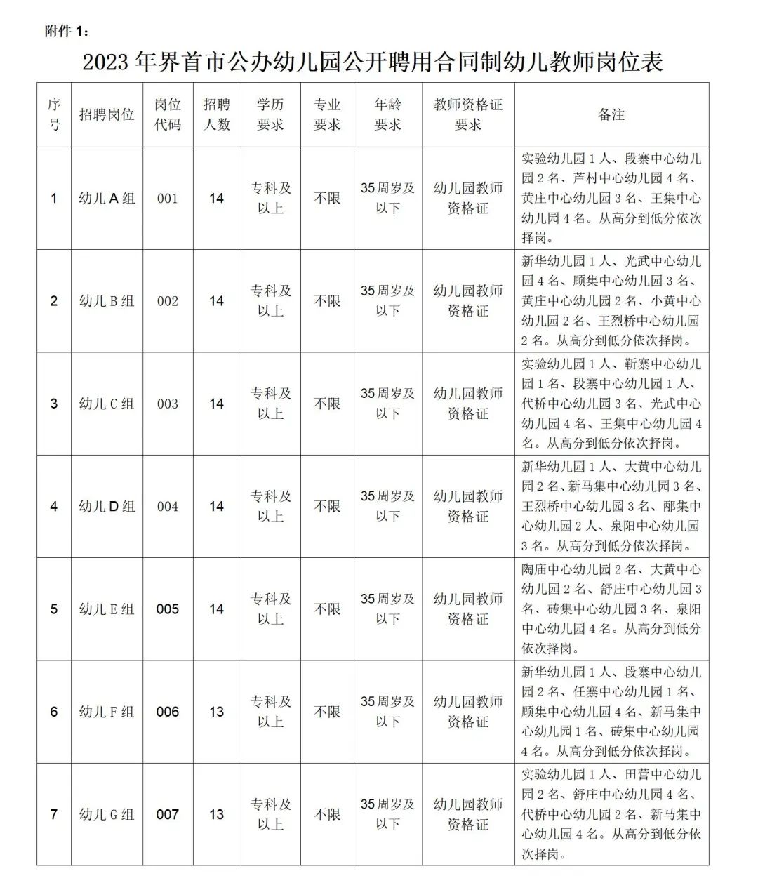 2023年界首市计划公开招聘派遣制幼儿园教师96名(具体岗位详见附表)