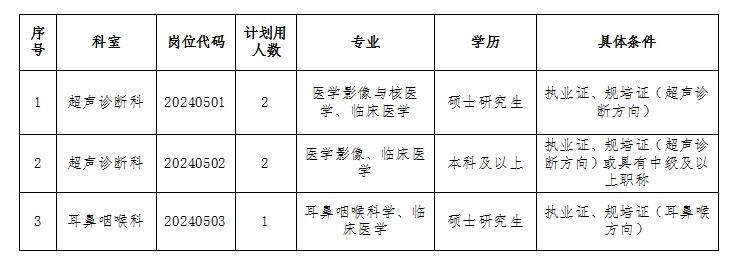 根据医院工作需要,经院部研究,拟招聘紧缺岗位人员5名。
