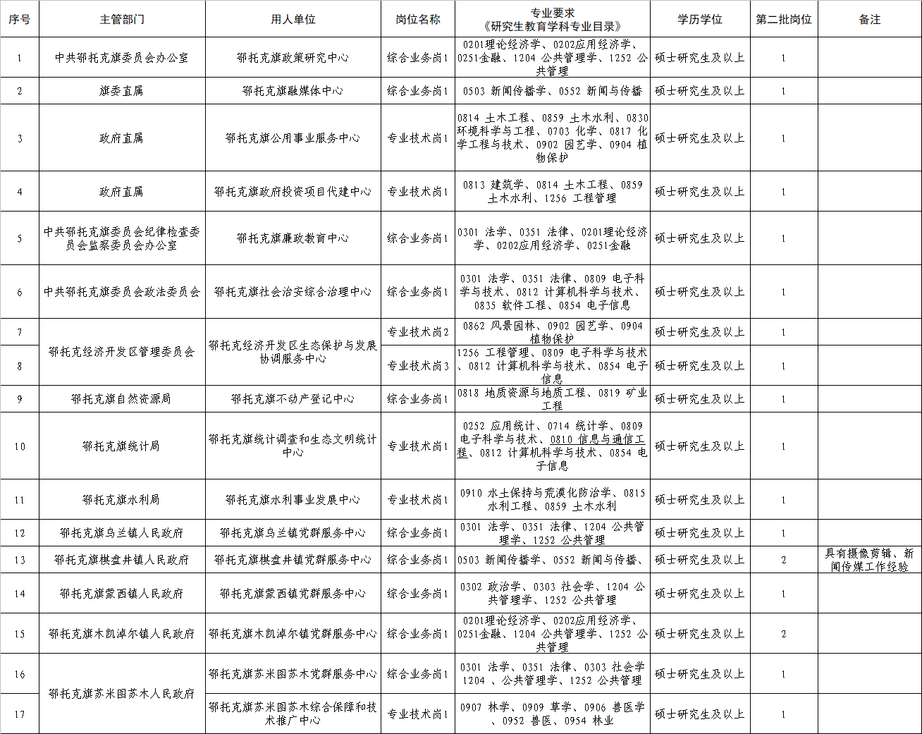 1.鄂托克旗2024年度事业单位引进高层次人才和紧缺专业人才需求目录