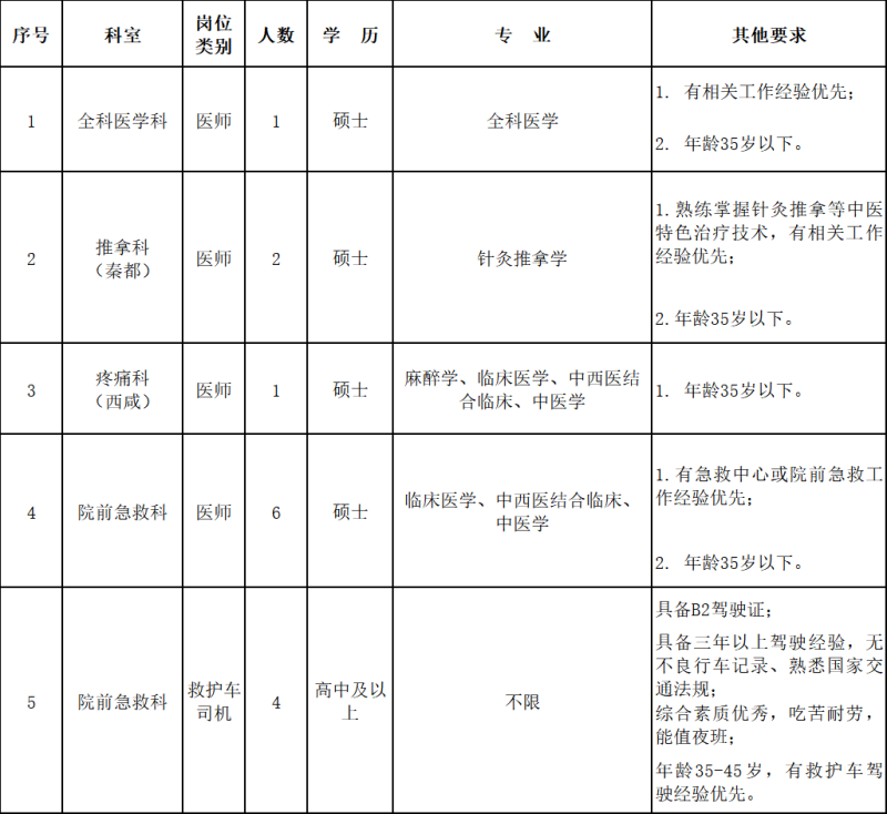 因发展需要,陕中二附院拟公开招聘14名工作人员,现将有关事项公告如下。
