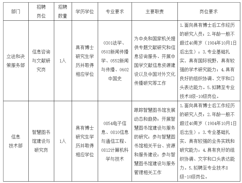 根据图书馆事业发展需要,国家图书馆面向社会公开招聘2名事业编制工作人员,现将具体事项公告如下: