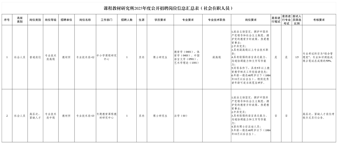 附件:课程教材研究所2025年度招聘岗位信息汇总(社会在职人员)