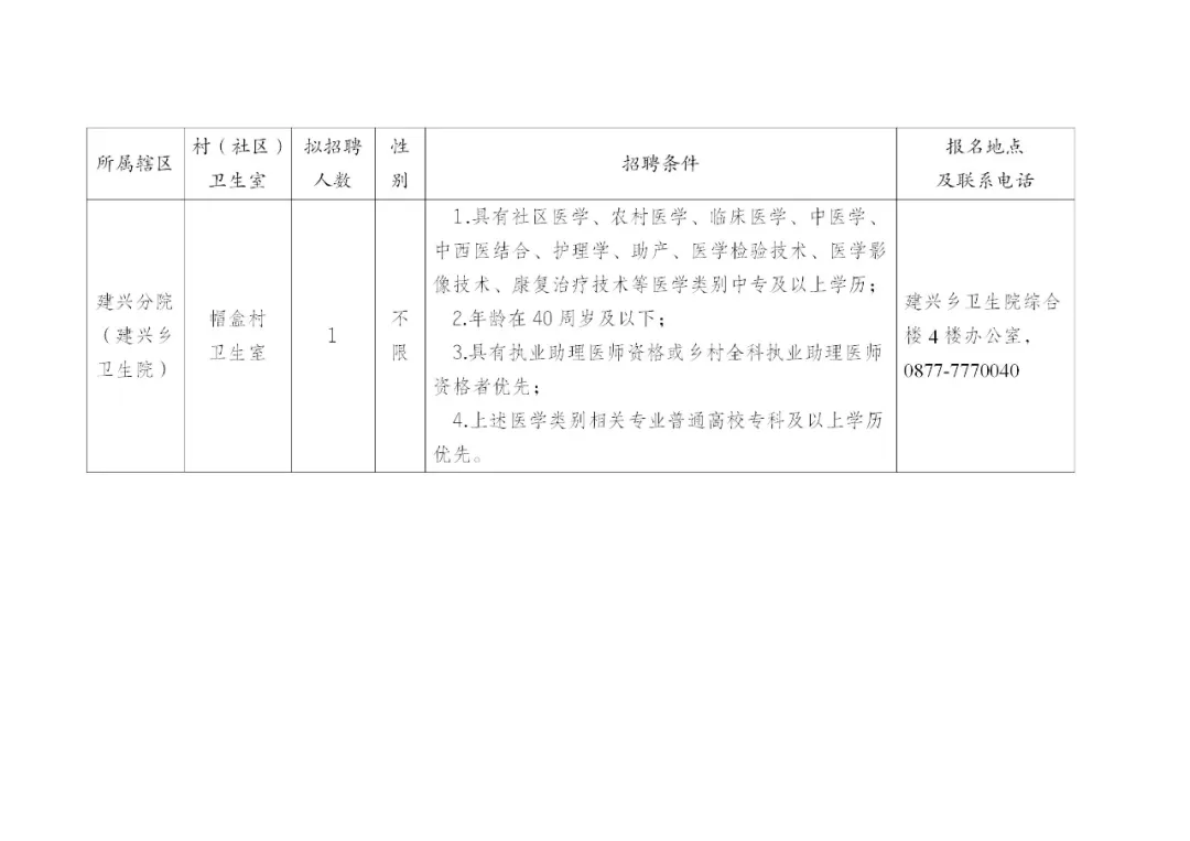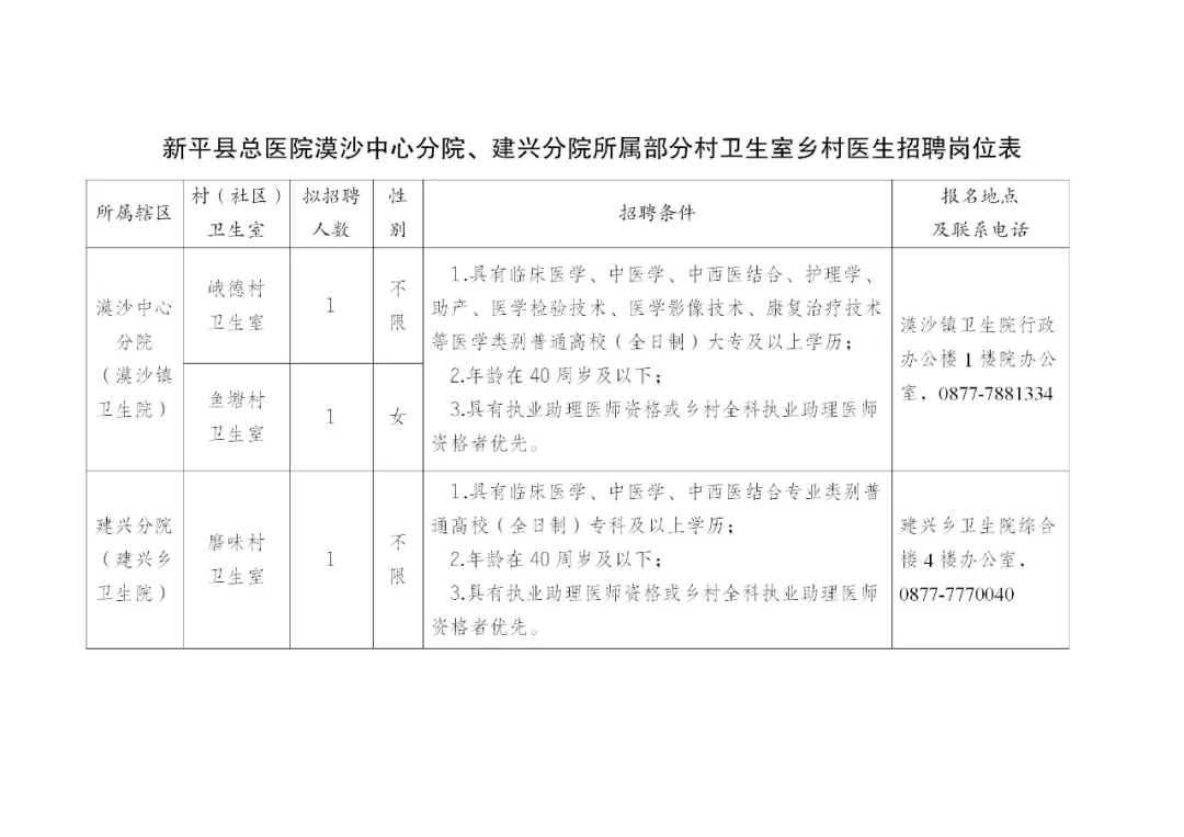 附件:新平县总医院漠沙中心分院、建兴分院所属部分村卫生室乡村医生招聘岗位表