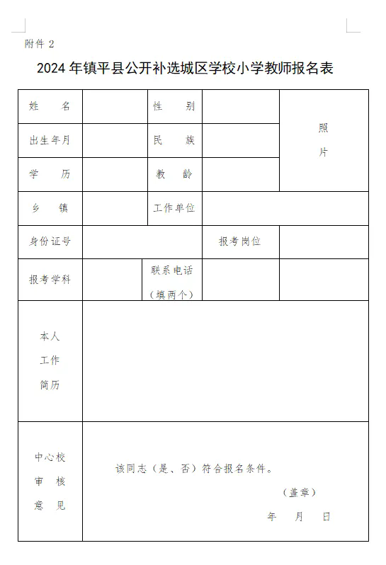 附件2:2024年镇平县公开补选城区学校小学教师报名表