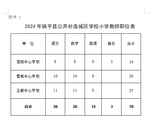 附件1:2024年镇平县公开补选城区学校小学教师职位表