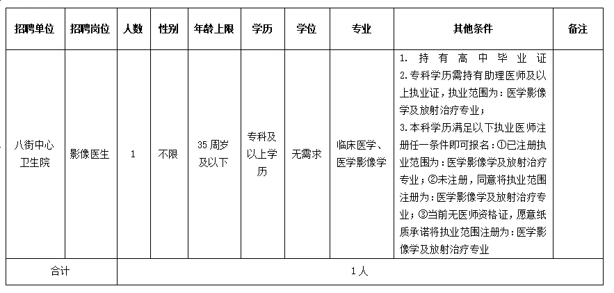 现因工作业务需要,医共体下八街中心卫生院面向社会招聘非事业编工作人员。
