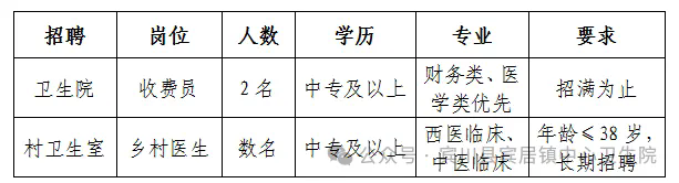 宾川县宾居镇中心卫生院及卫生室因工作需要,现面向社会公开招聘卫生院编外人员2名、乡村医生数名,现将招聘有关事项公告如下:
