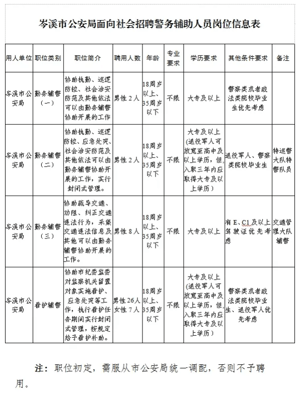 根据《广西壮族自治区公安机关警务辅助人员条例》等相关规定,结合实际工作需要,岑溪市公安局决定面向社会公开招聘警务辅助人员(以下简称“辅警”),现将有关事项公告如下。